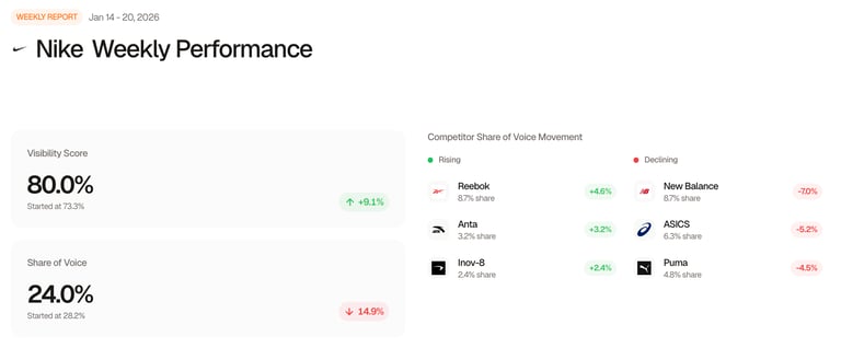 As consumers turn to ChatGPT, Perplexity, and Google’s AI Overviews for product advice, we track how your brand and products appear - revealing gaps, inaccuracies, and missed opportunities.